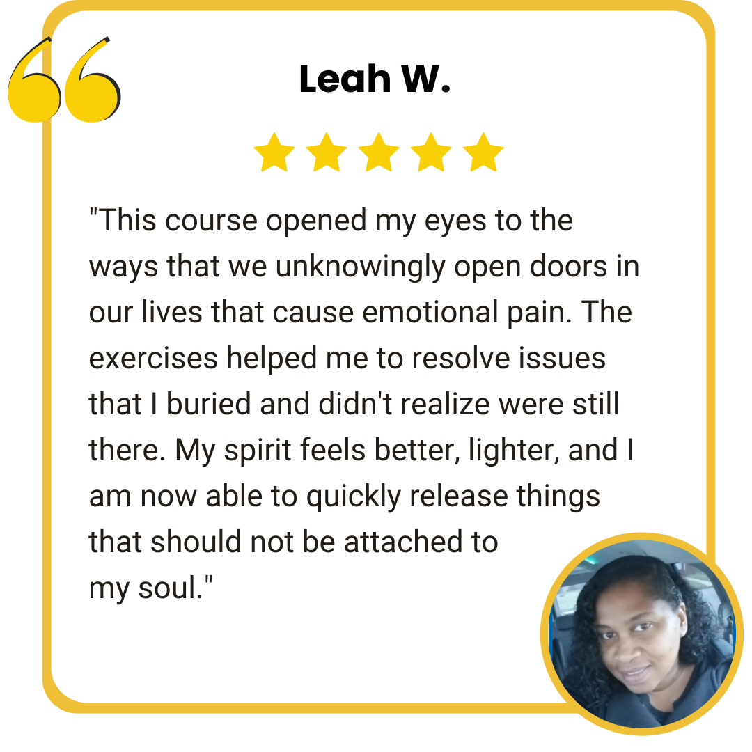 Most approaches help you cope or manage emotional pain. This program heals at the root with faith-based inner work, personalized spiritual and emotional guidance, and deep, lasting transformation. In fact, many women report feeling a shift within the first 20 minutes, something they hadn’t experienced even after years in therapy.